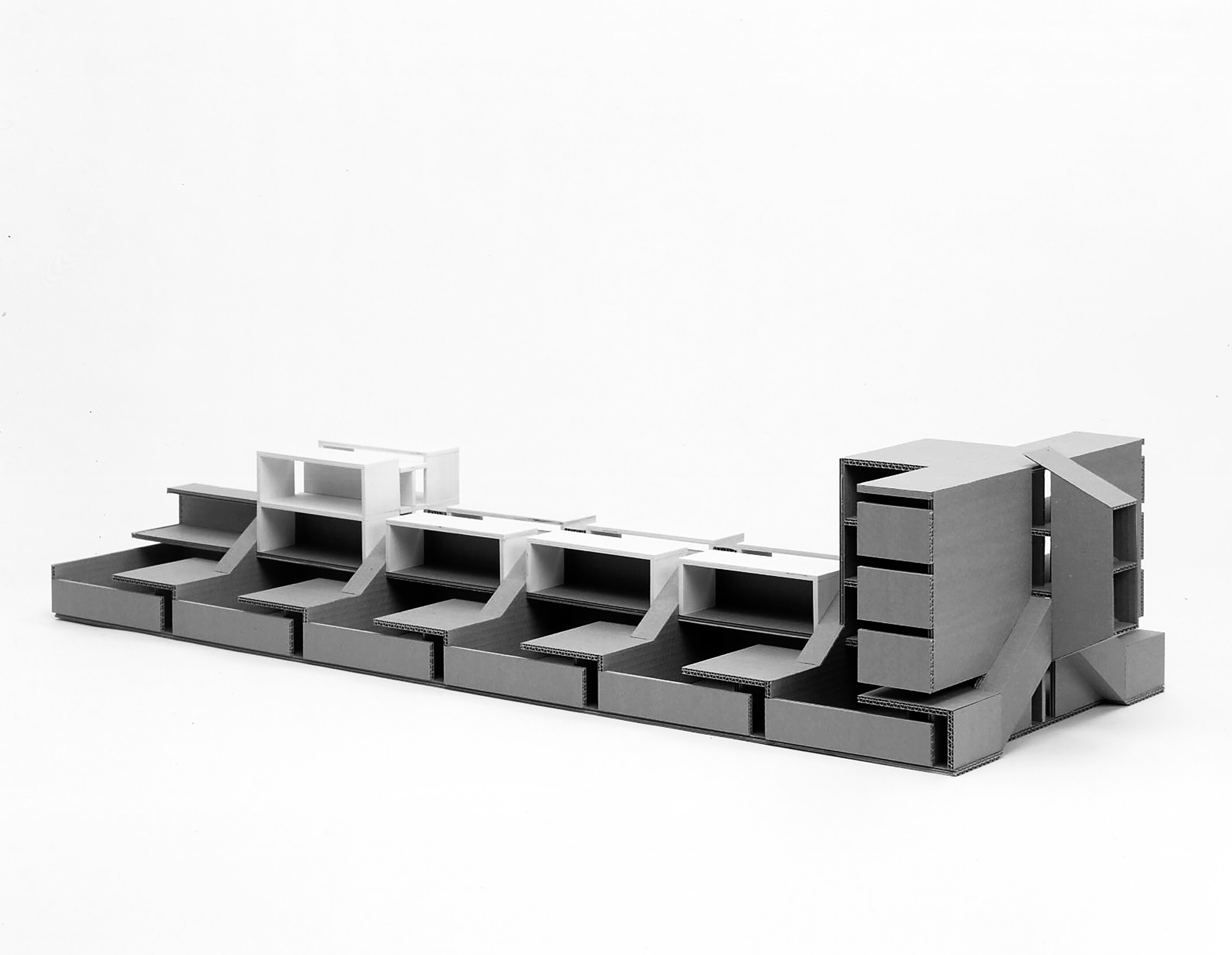 Für ein Grundstück in Lustenau wurde ein Konzept für eine Grundstruktur mit 10 x 10 m Abmessung aus massiven Betonelementen entwickelt, welche mit allen notwendigen technischen Installationen ausgestattet und für den Weiterbau in Leichtbauweise geeignet ist. Als Kleinwohnung eingeschossig um einen Hof organisiert – es besteht ein Aufgang zur darüber liegenden Terrasse –, ist sie bis zu dreigeschossig ausbaubar. Weiterbauen statt umziehen.